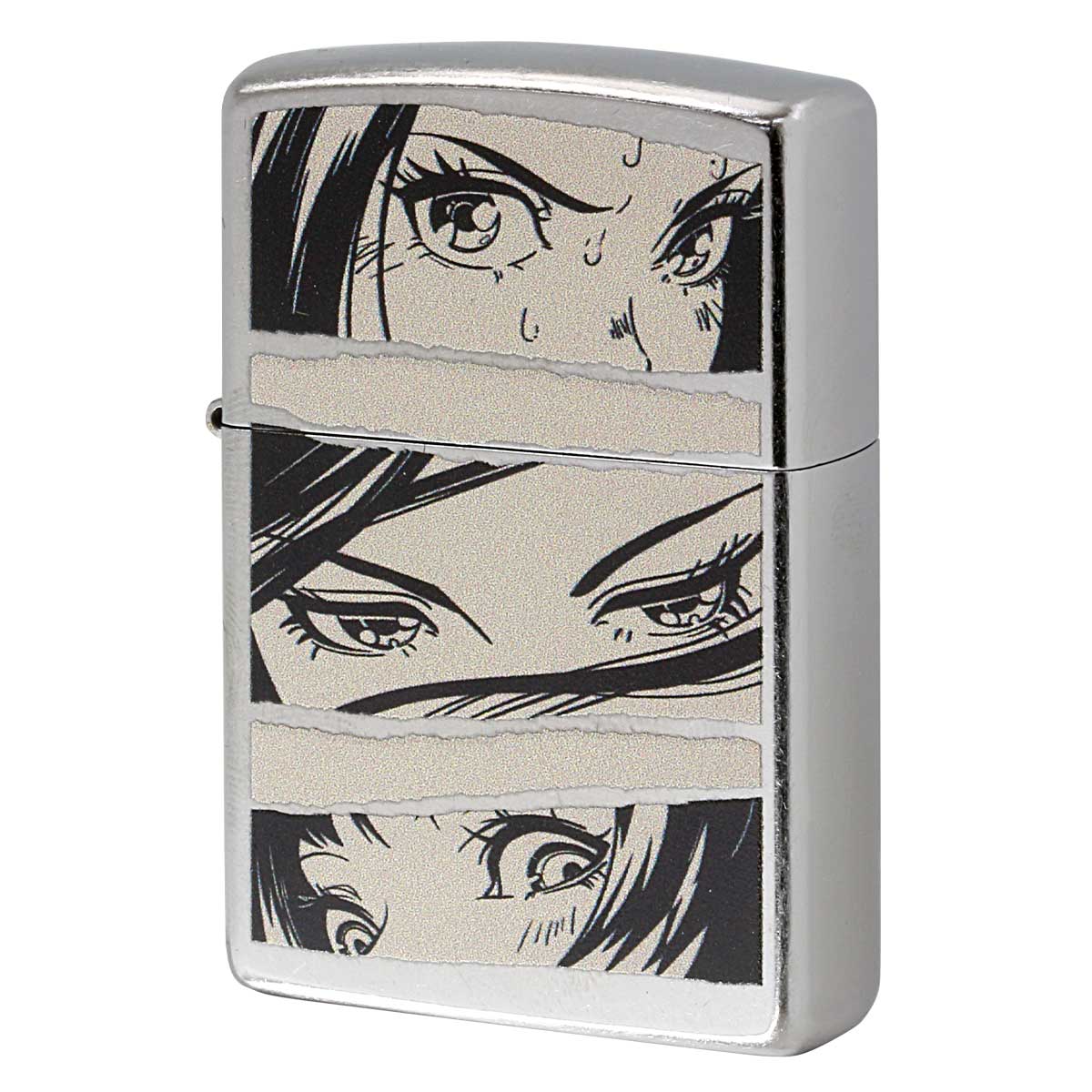 女性の様々な表情が読み取れる3パターンの瞳が、デザインされております。焦りを感じる視線や冷静な視線、はっと驚く視線でしょうか?いろんなシチュエーションが思い浮かぶ視覚的な面白さが感じられるZIPPO。No.207のストリートクロームにプリント加工。普段使いにオススメです。
