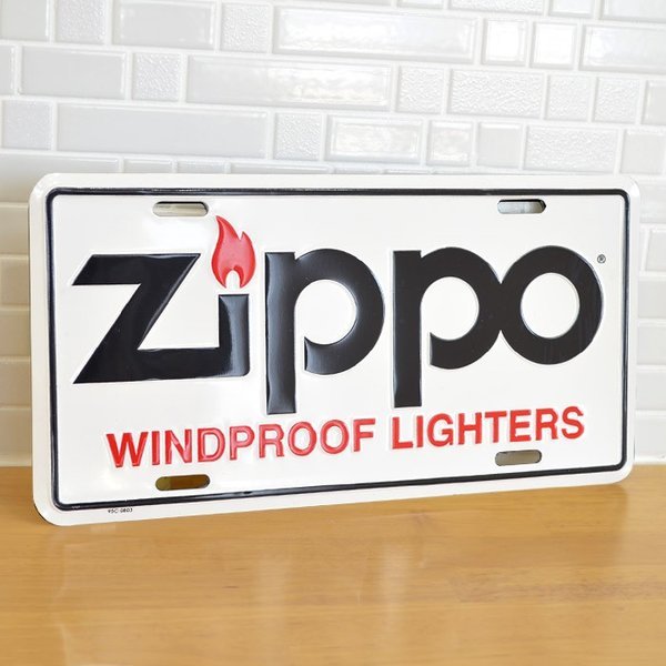 ZIPPOナンバープレート 白 × 黒ロゴ WINDPROOF