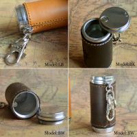 真鍮の筒に本牛革を巻いた、アクセサリー感覚で持てる、高級感溢れる携帯灰皿。