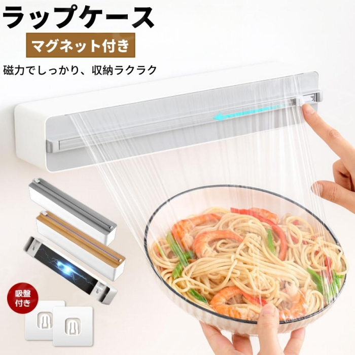 ラップケース マグネット付き ラップカッター ラップカット ラップホルダー マグネットラップケース 壁掛け 吸盤付き 両方向スライド キッチン収納