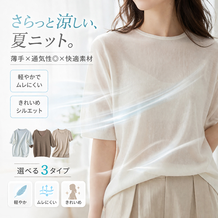 2点まとめ買いで送料無料 サマーニット レディース 半袖 Tシャツ カットソー ハイゲージ 薄手 涼しい 無地 きれいめ トップス 冷房対策 夏 1枚あたり990円