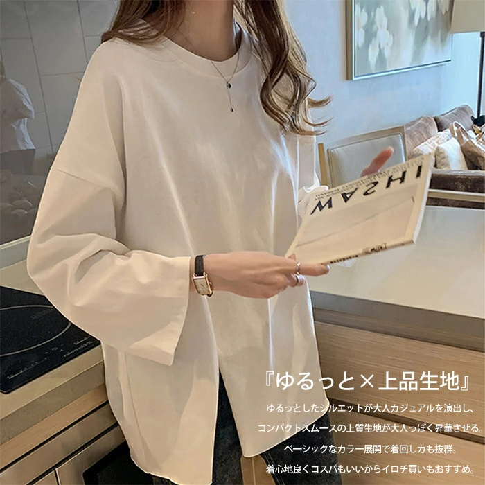 <2点購入で送料無料>カットソー レディース Tシャツ ロンT ティーシャツ インナー 無地 長袖 Tシャツ ロング チュニック お尻が隠れる ゆる綿95% ok 26ss-tops