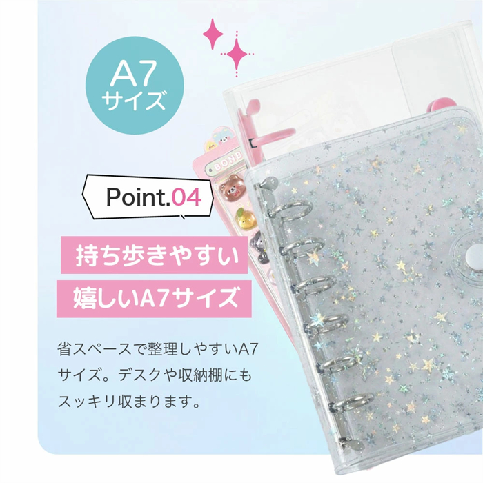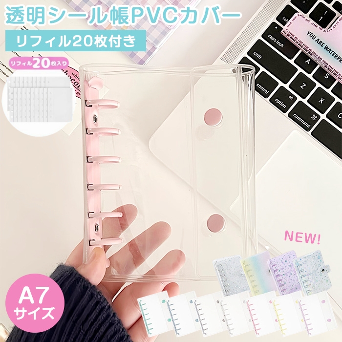 <2点目半額⇒945円>シール帳 リフィル20枚付 A7 バインダー 透明 クリア シールバインダー リフィルのみ有 はがせる 手帳 台紙 6穴 女の子 男の子 推し活