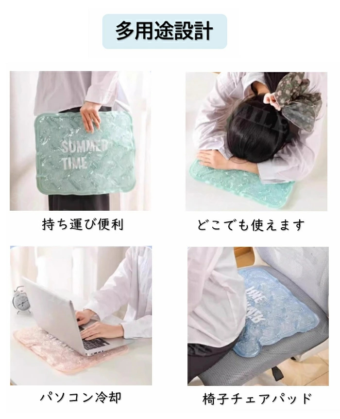 【用途】仕事、車の運転、勉強中の冷却座布団として役に立ちます。防水性があるので、お風呂、ビーチ、プールでも使えます。家でくつろぐ時に冷たい抱き枕としても活躍します。まさに夏の定番商品です!