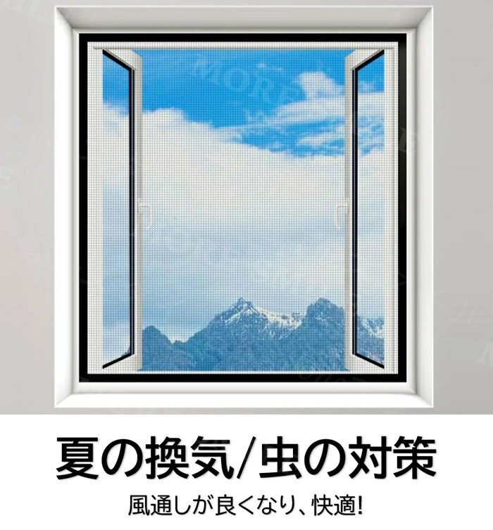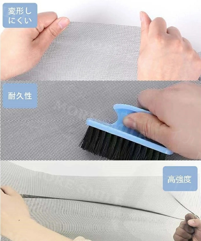 マジックテープ付き、簡単に貼り付ける防虫網です。窓のサイズや形に合わせてフリーカットができます。網戸を作るお手間もお金も節約します。使わない季節とか、引っ越しとか、取り外して収納できます、来年も再利用して、コストパフォーマンスが高い網戸です。