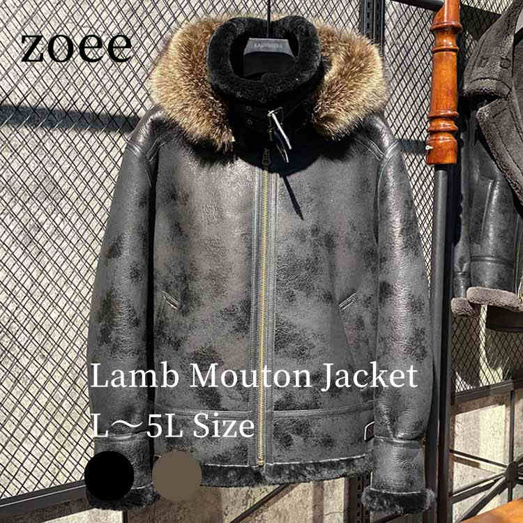 ラムムートン ラムレザー ジャケット コート ラクーンファー フード付き メンズ アウター 羊皮 本革 秋/冬 ブラック/ブラウン L/2L/3L/4L/5L l4a08