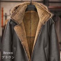ラムムートン ラムレザー ジャケット コート ラクーンファー フード付き メンズ アウター 羊皮 本革 秋/冬 ブラウン M/L/2L/3L/4L/5L l4a10