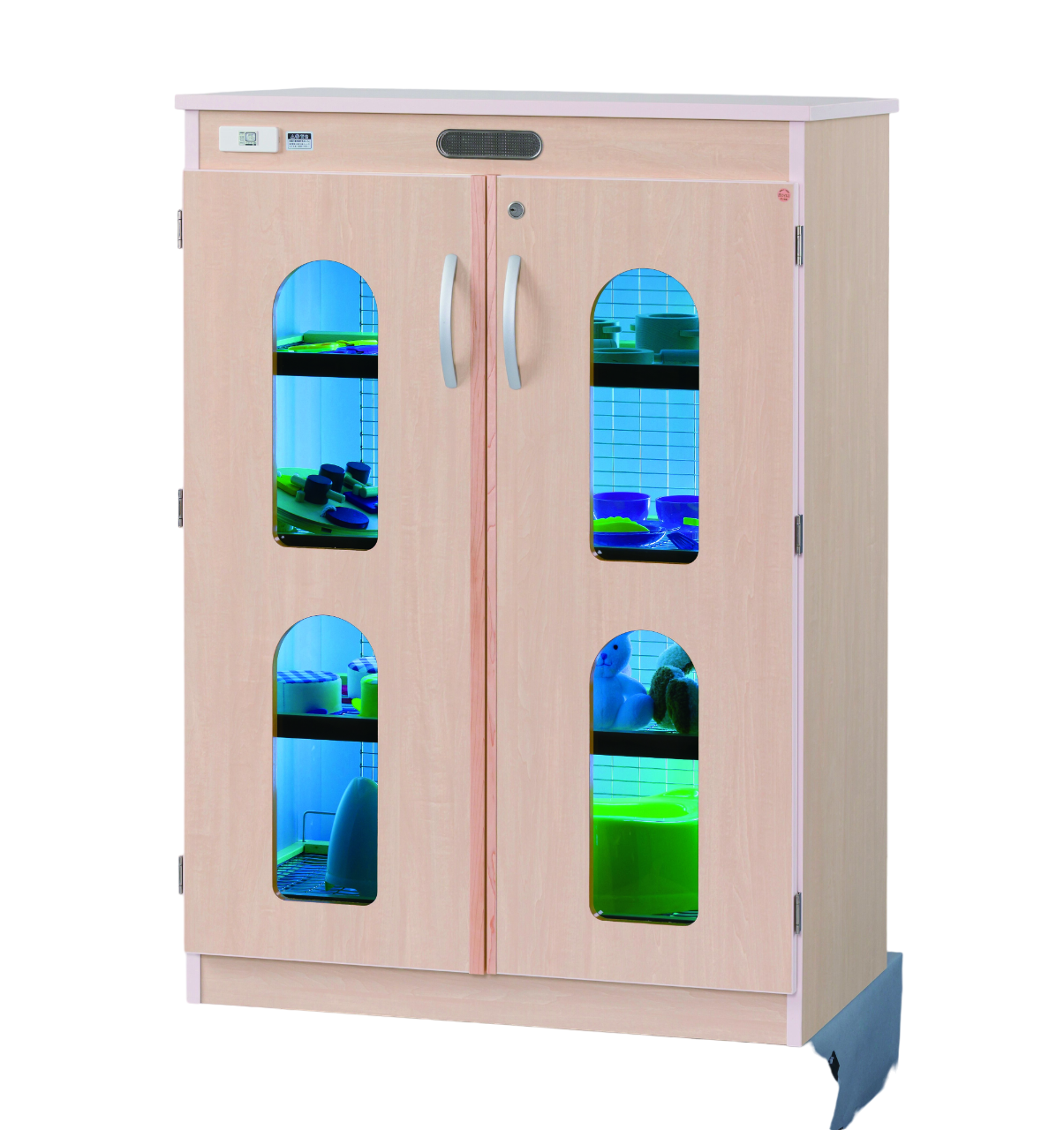 菌・ウイルスに対して最も効果の高い波長253.7nm(ナノメートル)の紫外線を照射するランプで庫内のおもちゃを殺菌します。