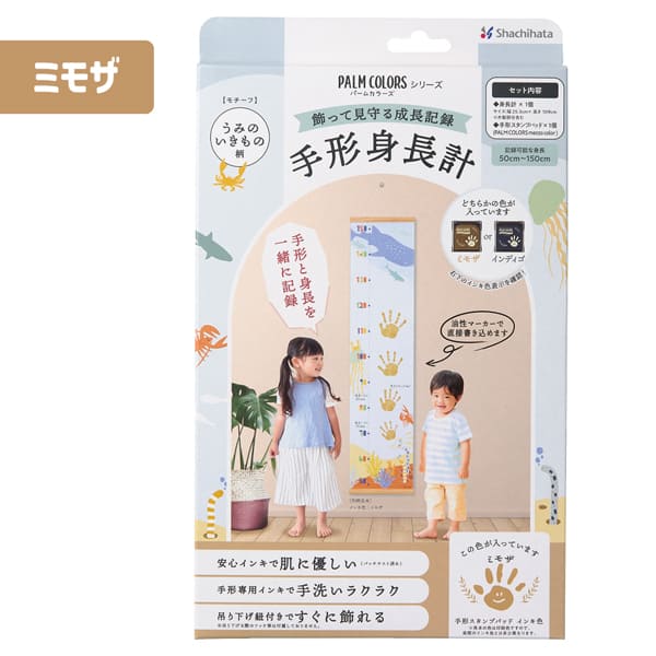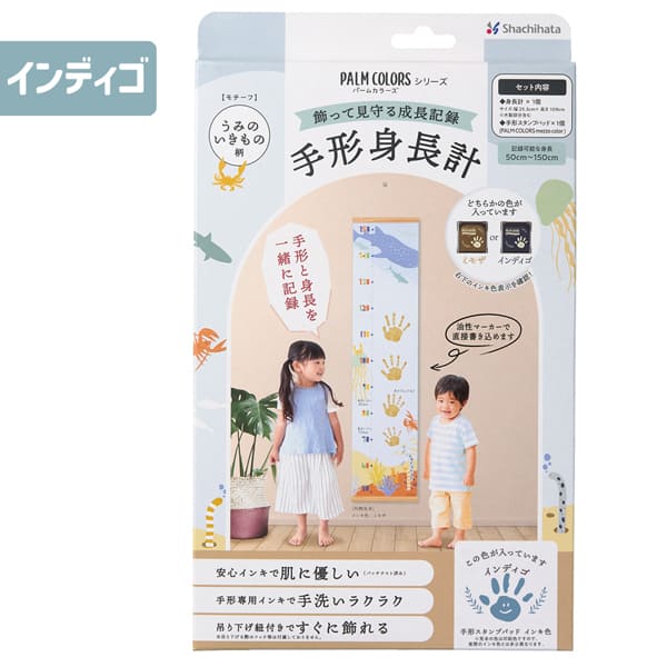 手形身長計 うみのいきもの柄 シャチハタ シヤチハタ ファーストアート 成長記録 カード セット プレゼント スタンプ 子育て 手形 足形 キット 赤ちゃん ベビー