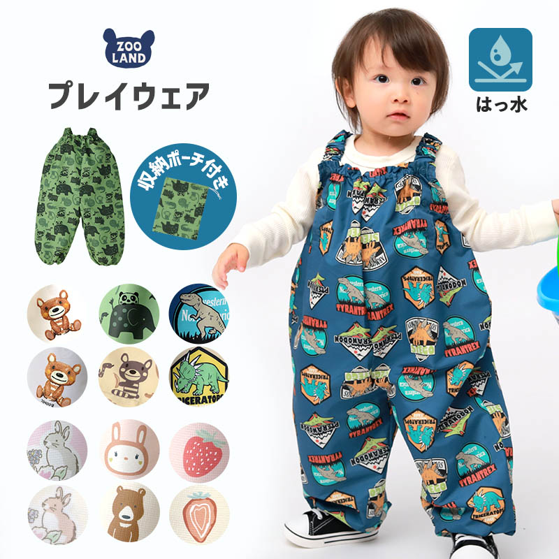 雨や汚れから子どものお洋服を守るプレイウェア♪雨を弾く素材なので水濡れもしっかりと防いでくれます。肩紐がゴムなのでお子様の成長に寄り添って長く着られます。 [234037] プレイウェア お砂場着 はっ水 撥水加工 子供 砂遊び サロペット ( 80-110cm ) 砂遊び 雨の日 雨具 柄 幼稚園 公園 エプロン キッズ ベビー 汚れ防止 子供服 恐竜 ダイナソー ZOOMIC ズーミック くま 花 オーバーオール つなぎ スモック 80cm 90cm 95cm 100cm 110cm