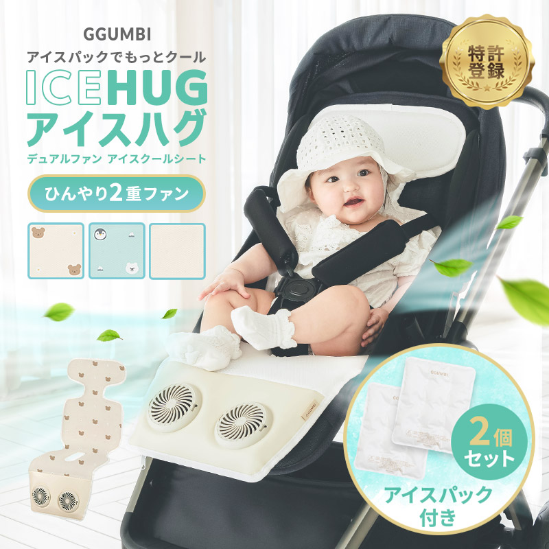 ベビーカーシート ファン付き 冷感 ベビーカー 扇風機 GGUMBI アイスハグ 保冷 オールシーズン クマ 無地 ベビーカー用 チャイルドシート ベビー ギフト