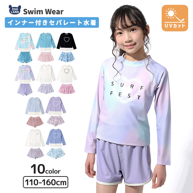 インナー付き 子供 水着 女の子 セパレート水着 2点セット 長袖 ラッシュガード UV加工 UPF50+ 110cm 120cm 130cm 140cm 150cm 160cm キッズ スイムウェア