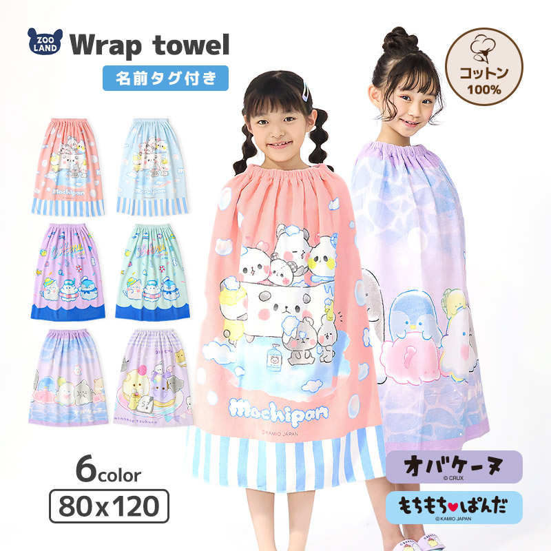 オバケーヌ ラップタオル 80cm x 120cm 綿100% キャラクター 女の子 ネームタグ付 プールタオル スイムグッズ 水着用品 バスタオル スイミング 巻きタオル
