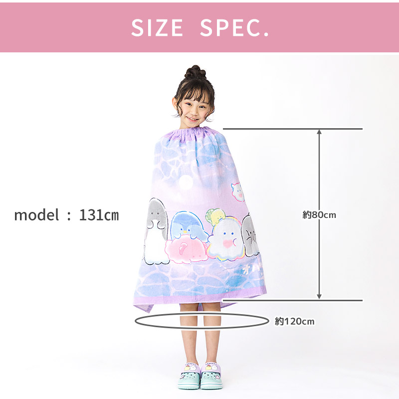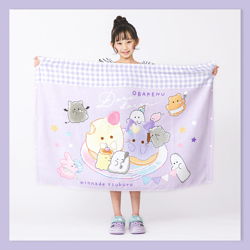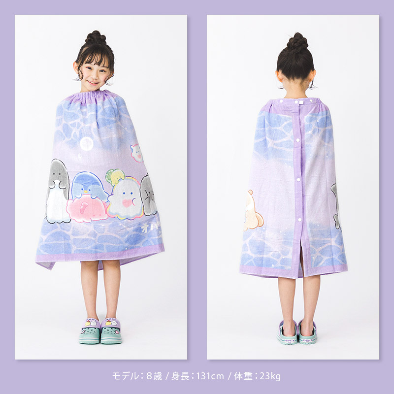 新作 圧縮パック配送 水着 スイムグッズ キッズ ベビー プールタオル お着替えタオル ラップタオル バスタオル 巻きタオル 80x120cm ガールズ 通園 通学 24夏 オバケーヌ[242951]<br>