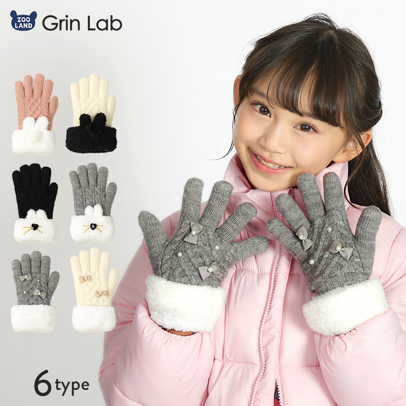 キッズ グローブ 手袋 ファー素材 女の子 防寒 保温 ガールズ 防寒 GrinLab グリンラボ 子供服 子ども 子供 ボア パール リボン ウサギ ネコ 動物 アニマル