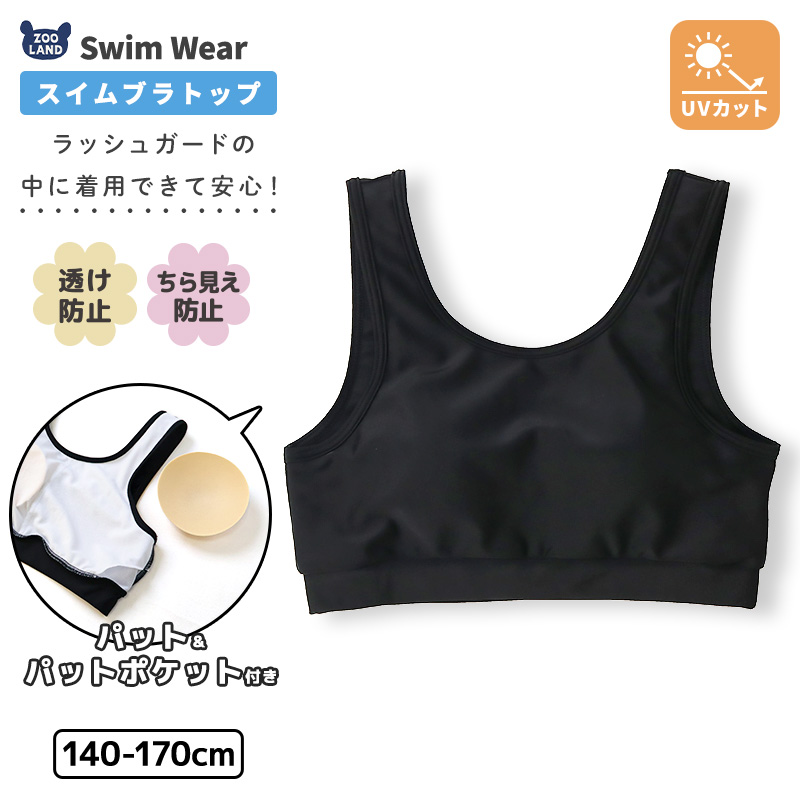 キッズ 水着 女の子 スイムブラトップ 裏地 パット付き スイムウェア スポーツブラ 日焼け対策 ラッシュガード 無地 UVカット UV加工 140cm 150cm 160cm 170cm