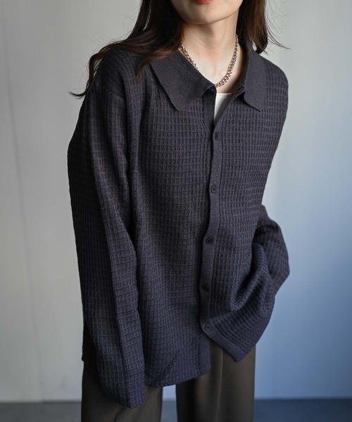 「ワッフルニットポロ(カーディガン) 」