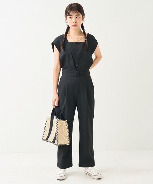 参考商品名:UVカット リネンライク フレンチスリーブサロペット