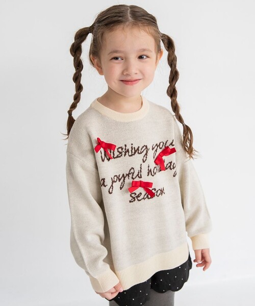 ロゴニットにリボンをあしらってるので