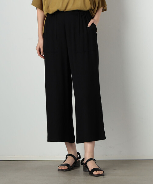 キーワード:パンツ レディース ウエストゴム クロップド ハイウエスト ワイドパンツ 無地