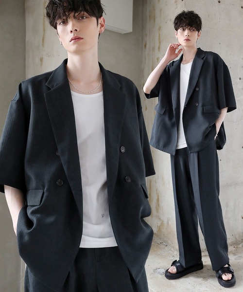 参考商品名:【セットアップ 2点セット】TEC CANVASダブルテーラードシャツ+センタープレススラックス