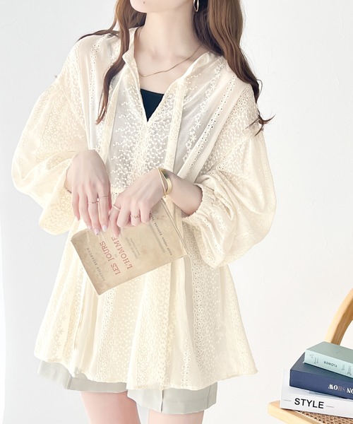 参考商品名:大人可愛い胸キュン。2wayシアー刺繍ペプラム切替ブラウス