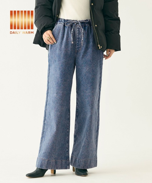 ボトムス デニム 裏起毛 ストレート 伸縮性 長ズボン ウエストゴム ウエスト紐 ポケット カジュアル 保温 25aw コカ COCA coca COCA coca