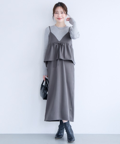 ワンピース キャミワンピ キャミワンピ ペプラム 切り替え 体型カバー オフィスカジュアル レイヤード 重ね着 ウォッシャブル 25aw コカ COCA coca COCA coca