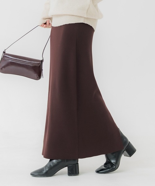 ボトムス スカート ニット 伸縮性 ハイウエスト きれいめ オフィス カジュアル 無地 ロング Iラインスカート ウォッシャブル 25aw コカ COCA coca COCA coca