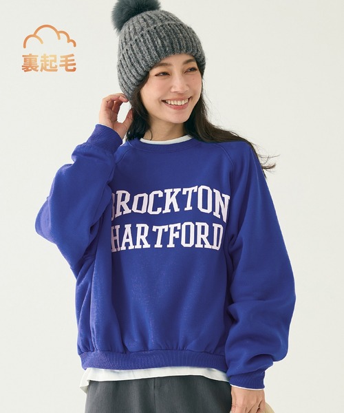 トップス スウェット 裏起毛 プルオーバー ロゴスウェット ロゴ 英字 ウォッシャブル クルーネック オーバーサイズ ゆったり 体型カバー リラックス ルームウェア マタニティ 保温 防寒 シンプル カジュアル 25aw コカ