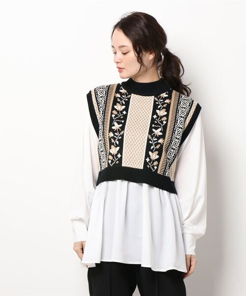 参考商品名:ジャガードシャツレイヤードニットトップス