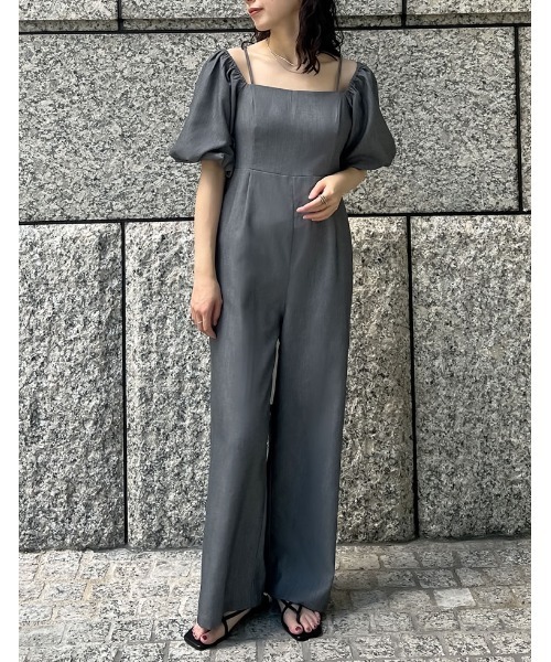 参考商品名:[低身長サイズ有]ツイルバルーンスリーブオフショルオールインワン