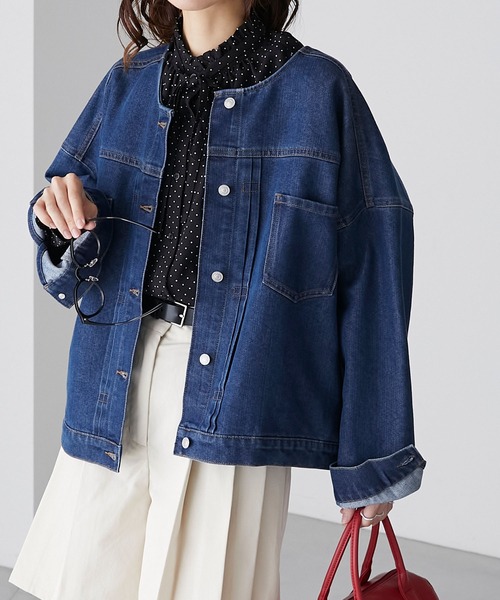 参考商品名:ノーカラーオーバーデニムジャケット/Gジャン