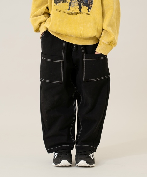 大きめポケットとカラーステッチがアクセントになった、遊び心あるカーゴパンツ。