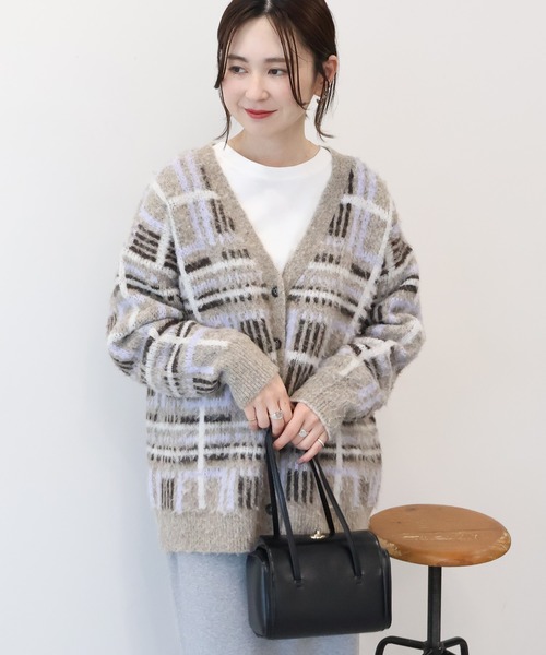 ふわふわとした目の詰まったニット素材で仕立てた暖かなカーディガン。