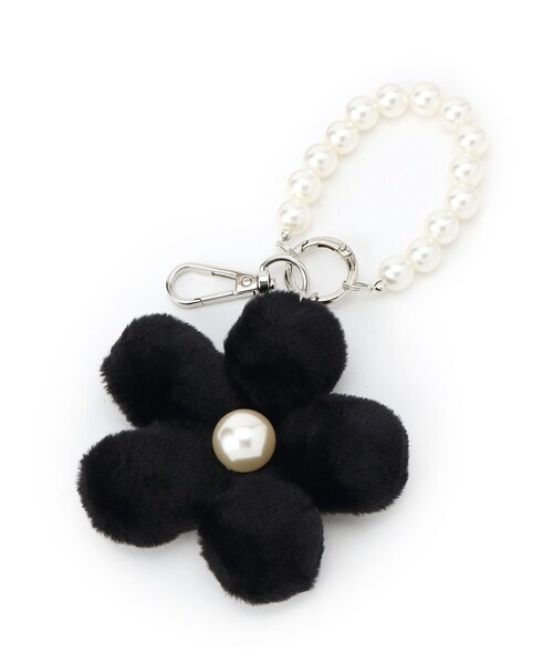 フェイクファー素材のフラワーモチーフに中央には存在感のあるパール調を添えた上品なチャーム。