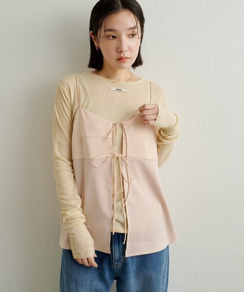 ・上品な生地感に加え、胸元のリボンが繊細で大人の可愛さを引き出します。