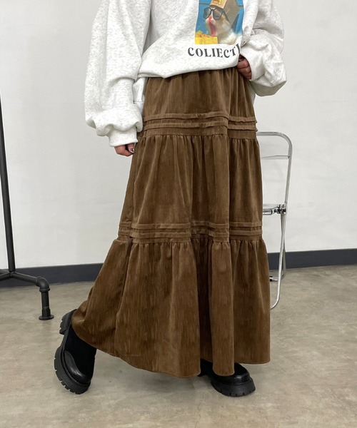 シーズンライクなコーデュロイ素材が魅力のティアードスカート。