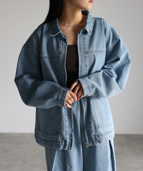 参考商品名:オーバーサイズ ビッグポケット ルーズ コットンデニム ブルゾン セットアップ対応