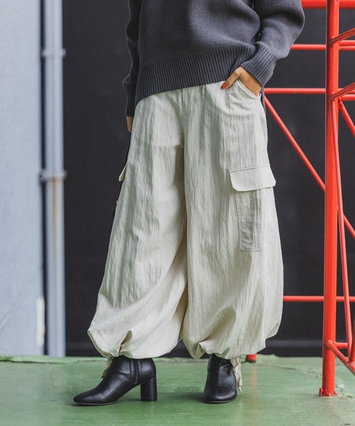 キーワード:カーゴパンツ レディース ウエストゴム ハイウエスト フルレングス 無地
