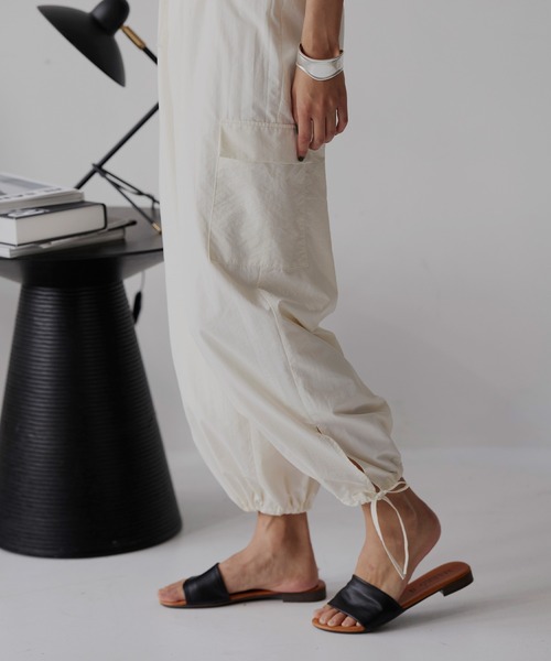 キーワード:カーゴパンツ レディース ウエストゴム スタンダード ハイウエスト フルレングス 無地