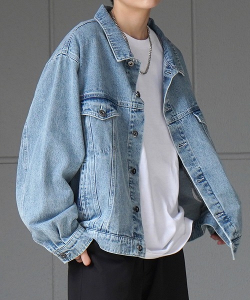 参考商品名:【新色追加】 ビッグシルエット ヴィンテージライク ケミカルウォッシュ加工 グラデーション デニムブルゾン / Gジャン デニムジャケット / ダブルポケット デニムブルゾン 【Confirm】