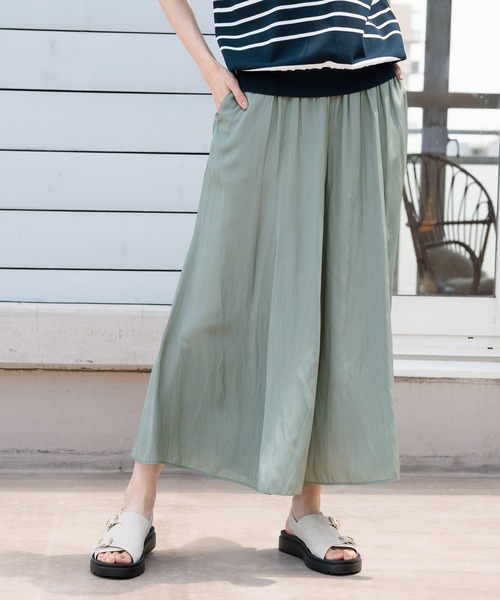 キーワード:パンツ レディース ウエストゴム クロップド ハイウエスト フレアパンツ ワイドパンツ 無地