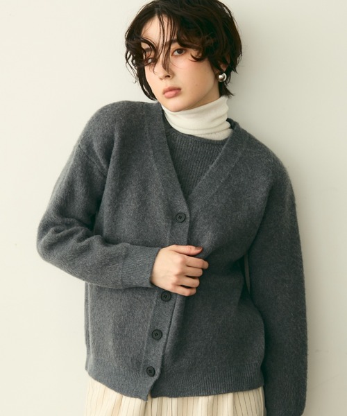 フレンチテイスト漂う上品なニットプルオーバー!同素材のカーディガンを羽織れば、洗練されたレイヤードスタイルに!