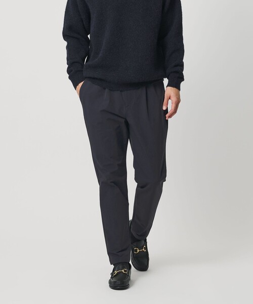 ウエストにタックを入れ、ヒップ周りにゆとりを持たせながら、ワタリから裾にかけて自然なテーパードを効かせたスマートなラインのイージーパンツ。