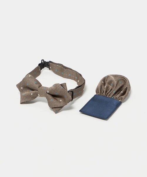 さりげないバイカラーのドット柄がお洒落なボウタイ&チーフセット。