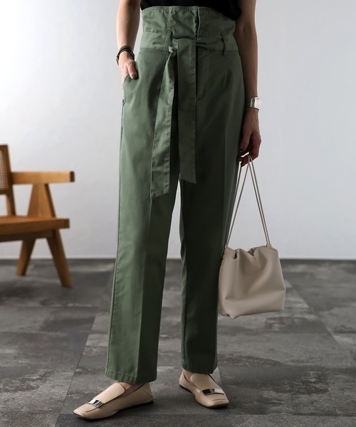 キーワード:チノパン レディース スタンダード センタープレス テーパード ハイウエスト フルレングス 無地