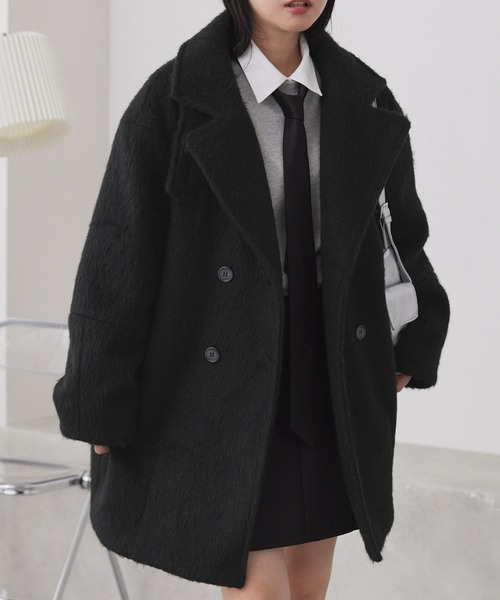 参考商品名:2WAYシャギーメルトンコクーンシルエットミドルPコート