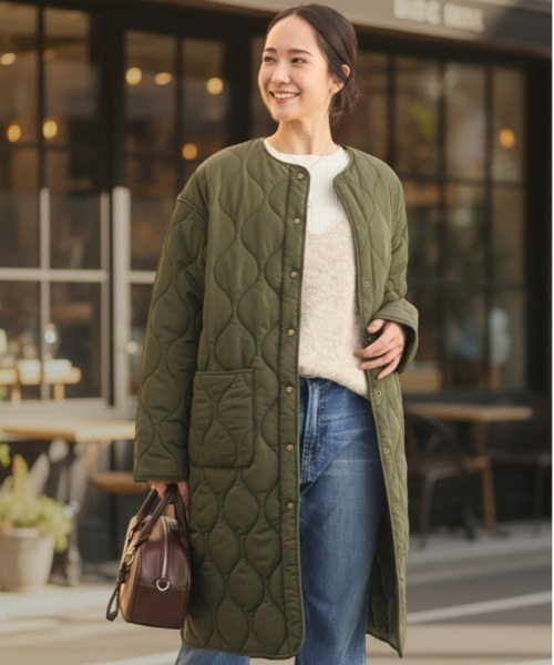 羽織るだけでこなれ感を演出する、大人のためのキルティングロングコート。