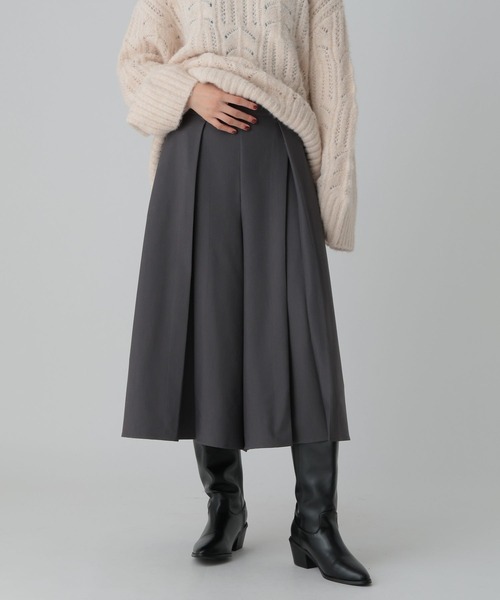 タックをしっかりと入れているので、お腹周りがすっきりと見えるハーフパンツです。柔らかい素材で落ち感があるので、女性らしいシルエットで着用することができます。